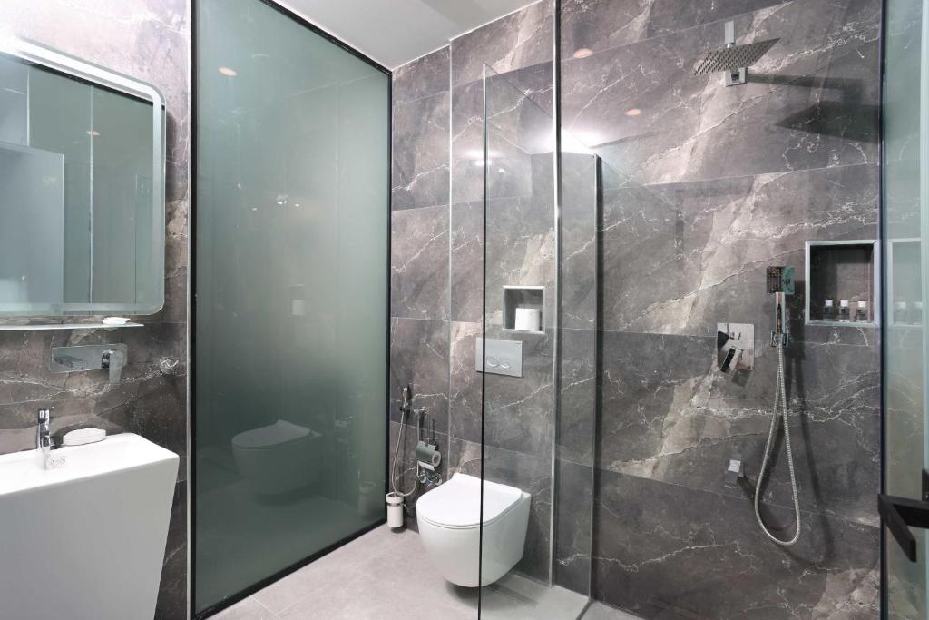 Во хотелот „Олимпик Космас“ – Ханиоти, сите сместувачки единици нудат сместување за 2 лица, вклучуваат гардеробер и телевизор со рамен екран. Секоја сопствена бања е опремена со туш, бесплатни тоалетни производи и фен. Секоја соба има тераса. Појадокот се служи на база шведска маса.