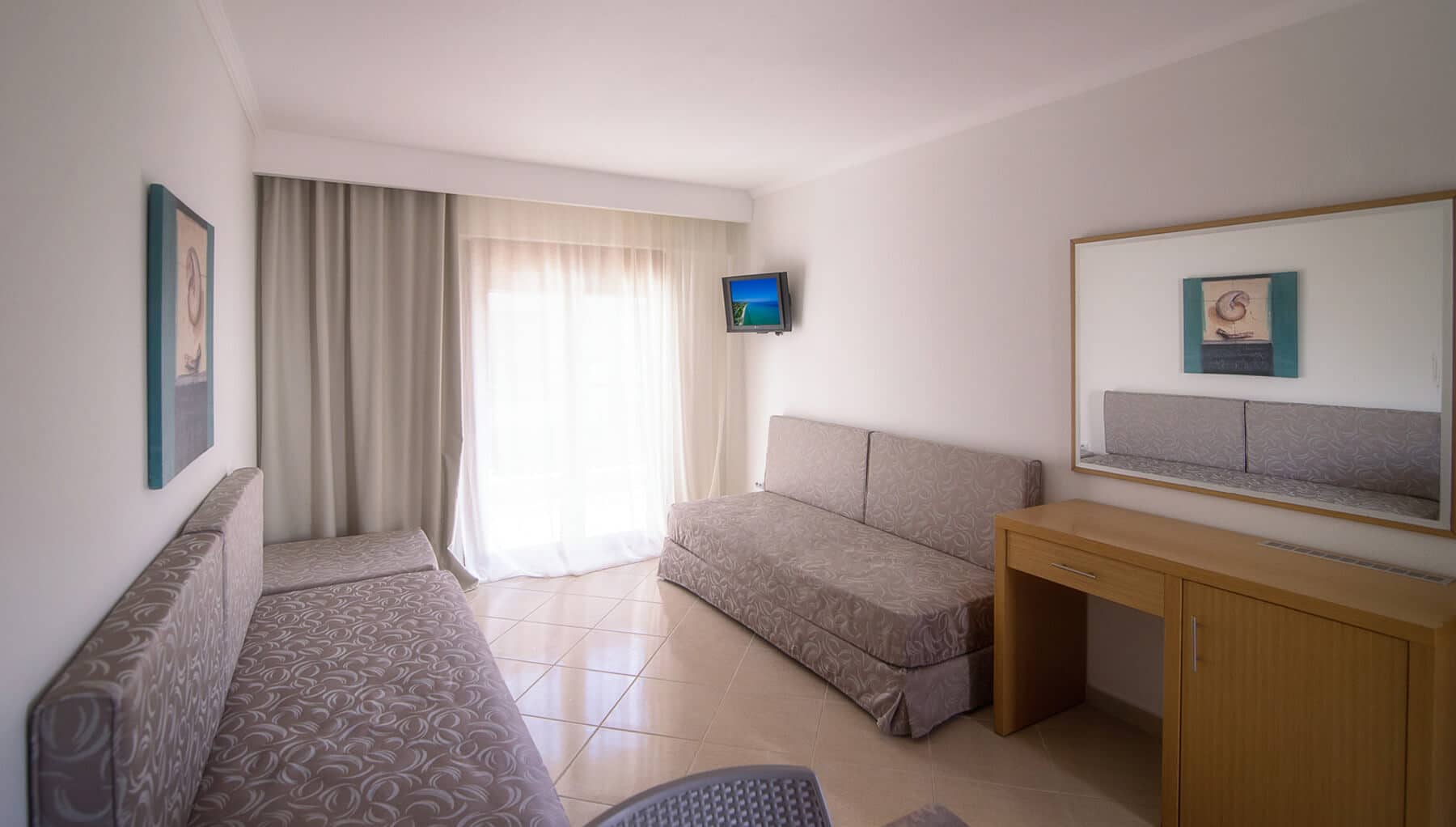 Хотелот нуди едноспални апартмани, составени од една спална соба, дневна соба со 2 единечни каучи и 1 софа, кујна и тоалет.