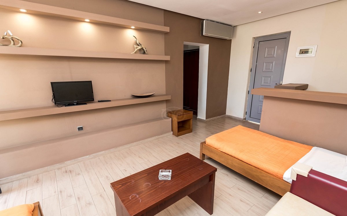 Нови и модерни двокреветни соби во главната хотелска зграда и приватни бунгалови сместени веднаш до главната хотелска зграда кои нудат фасцинантен поглед кон заливот Ахладис и Егејското Море.