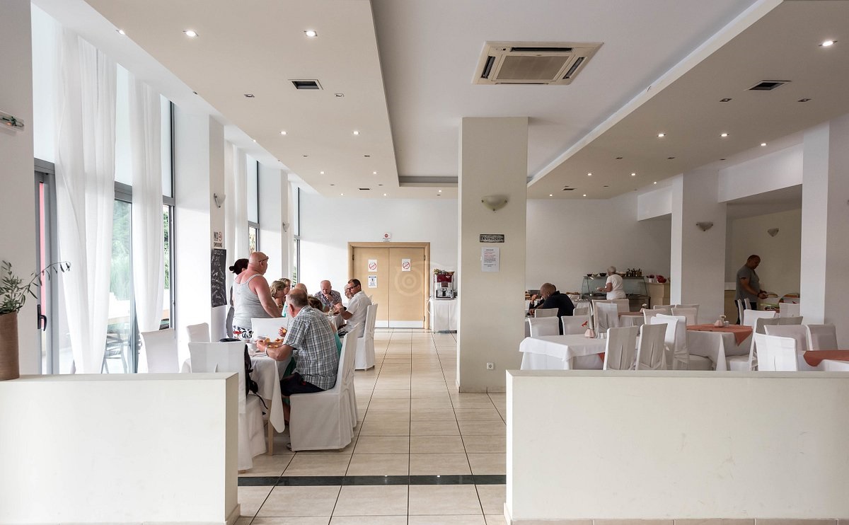 Веднаш наспроти хотелот има супермаркет, а по самата главна улица која води до плажата Кукунариес и до градчето ќе најдете еден куп ресторани и таверни.