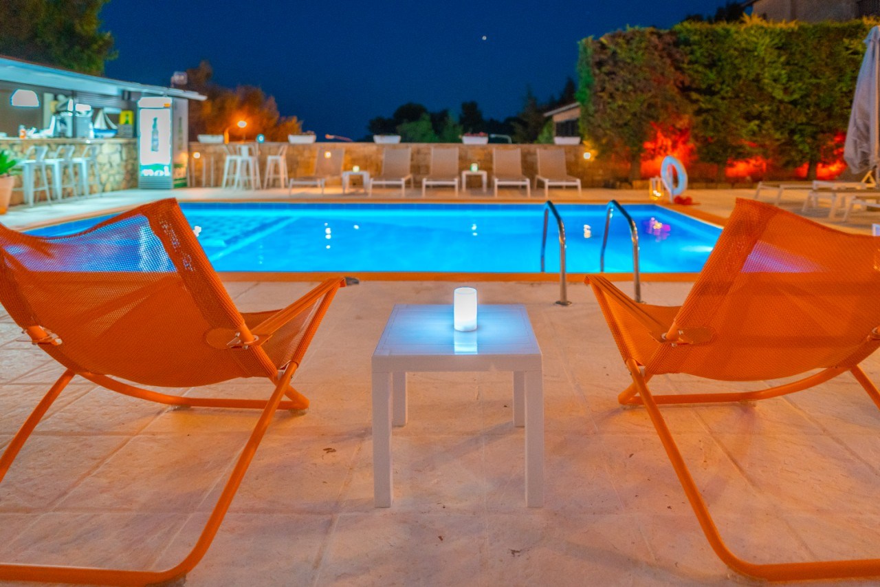 Надворешен базен (бесплатно), бар покрај базен, рецепција 24 / 7, игротека за деца