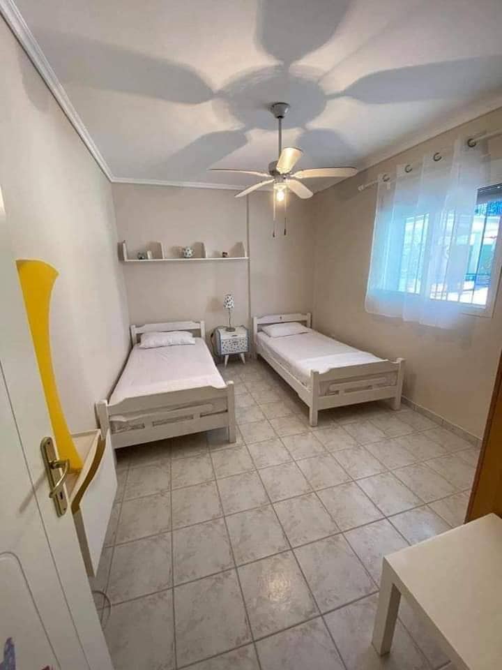 Апартман Нико 3 се наоѓа во Неа Флогита на 100м од плажа. Станува збор за дуплекс апартман, со две спални соби на приземје во којшто може да се сместат 6 лица (4 возрасни и 2 деца до 12 години). Во едната соба има брачен кревет, а во другата два единечни кревети. Во дневната има еден кревет на извлекување. Апартманот има кујна којашто е опремена за подготовка на храна, има клима и Wi-Fi кои се вклучени во цената.