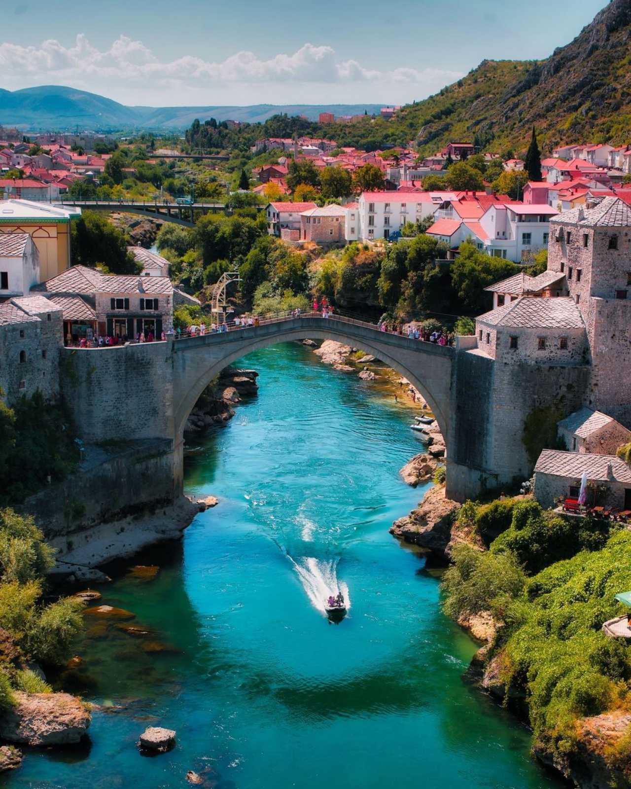 Се посетува стариот мост, каде што можете да направите фантастични фотографии . Голем дел од туристите доаѓаат во Мостар за да го видат мостот, но Мостар има многу повеќе за истражување. Безброј, продавници, сувенирници богати со бакарни предмети каде што можете да си купите сет за кафе или карактеристични локални сувенири или пак килими за вашиот дом, сето ова е лоцирано на Кујунџилук улицата. Ова е интересна улица (со калдрма) за прошетка, ако сте за шопинг можете да поминете часови овде. Слободно време околу 3 часа. Заминување кон Сараево. Посета на некој паб во австро-унгарскиот дел доколку има интерес од страна на групата. Ноќевање