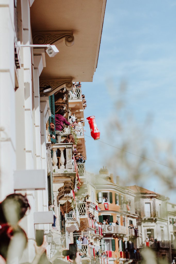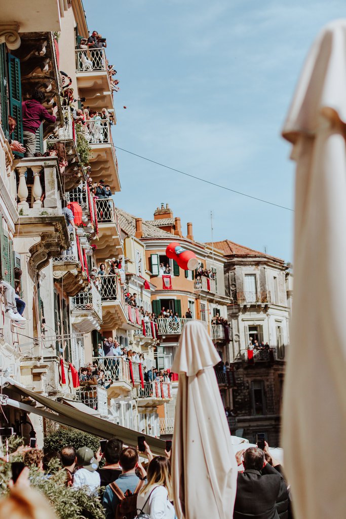 Овој ден е резервиран за вториот дел од Велигденската прослава, односно првата поворка наречена, првото Воскресение кое започнува во 09.00часот. Под строга заштита, се изнесуваат моштите на Св.Спиридон Чудотворец – заштитник на островот. Има повеќе легенди поврзани со овој светец кои ја објаснуваат вербата и почитта на народот кон него. Една од нив го споменува неговото влијание при повлекувањето на турската инвазија од островот. Тој се појавувал напомош на генералите кои се бореле да го ослободат островот. Облечен во темна наметка со запален факел влевал страв во умот на освојувачите наметнувајќи им опасност од натприродни сили. Во друга легенда пак, повторно се спомнува неговото херојство при бркање на опасната чума од градот, која бегајќи ги оставила своите траги на градските ѕидини. Под звуците на свечената музика составена од три филхармонии, пред моштите на светецот луѓето фрлаат каранфили со кои го постилаат неговиот пат. Откако ќе заврши парадата, почнуваат подготовките за еден оригинален локален обичај – кршење на глинените ќупови.