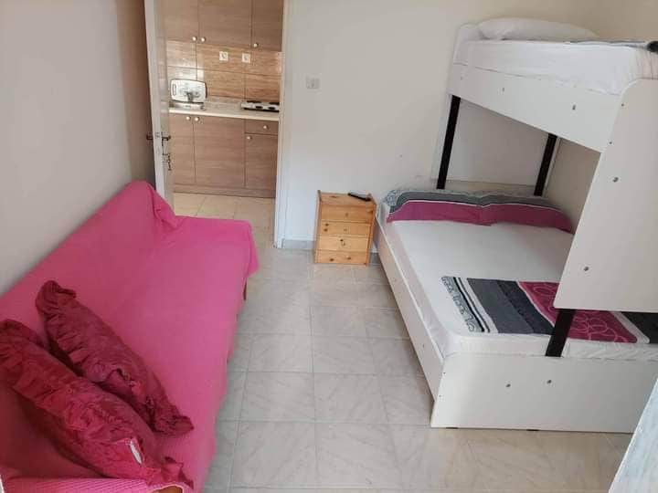 Апартманот се наоѓа на 100м. од плажа.Овој апартман е наменет за 4-5 особи.Има трпезарија со кујна,спална соба со брачен кревет,бања и тераса.Во трпезаријата креветот е на извлекување и една фотеља која исто така и таа се извлекува.Кујната е опремена со основен прибор за припрема на лесна храна.Во апартманот има и машина за перење алишта.Апартманот се наоѓа на втор спрат.