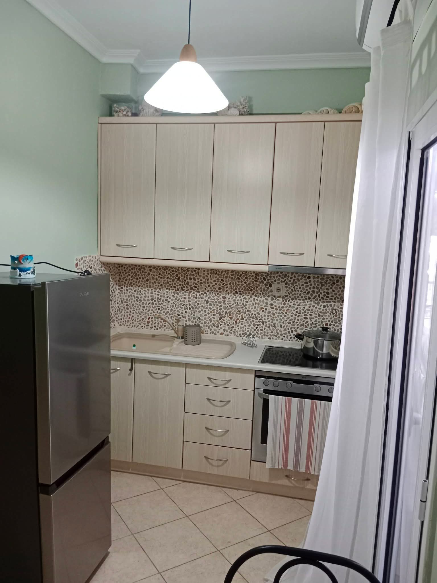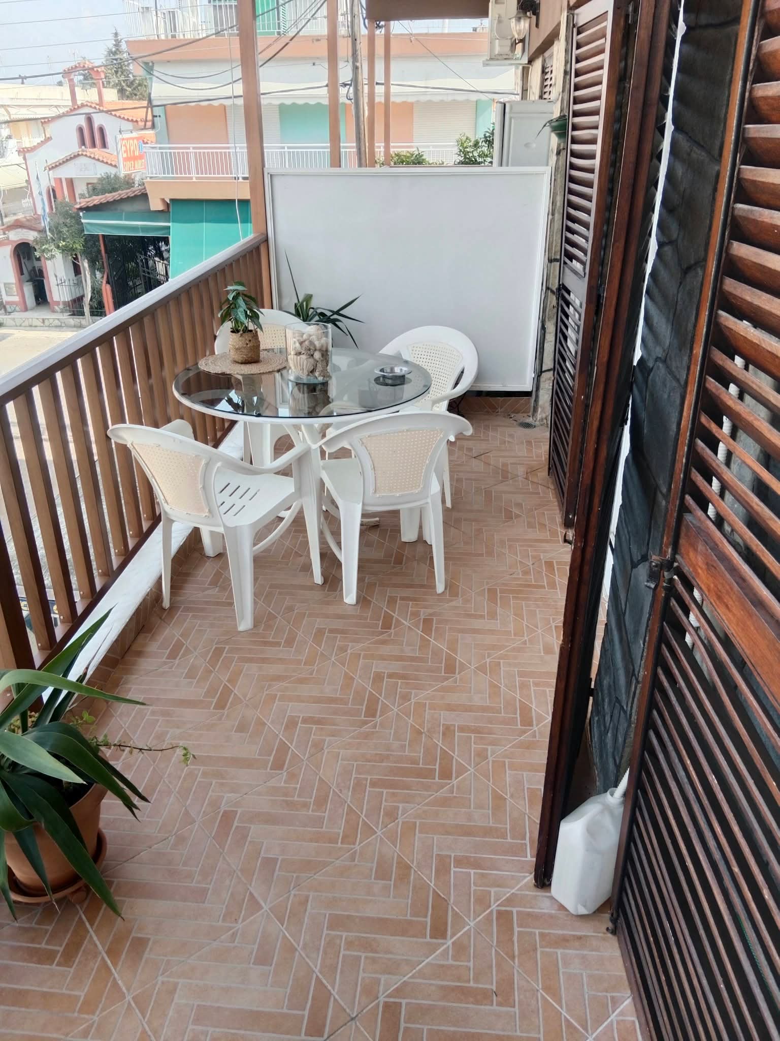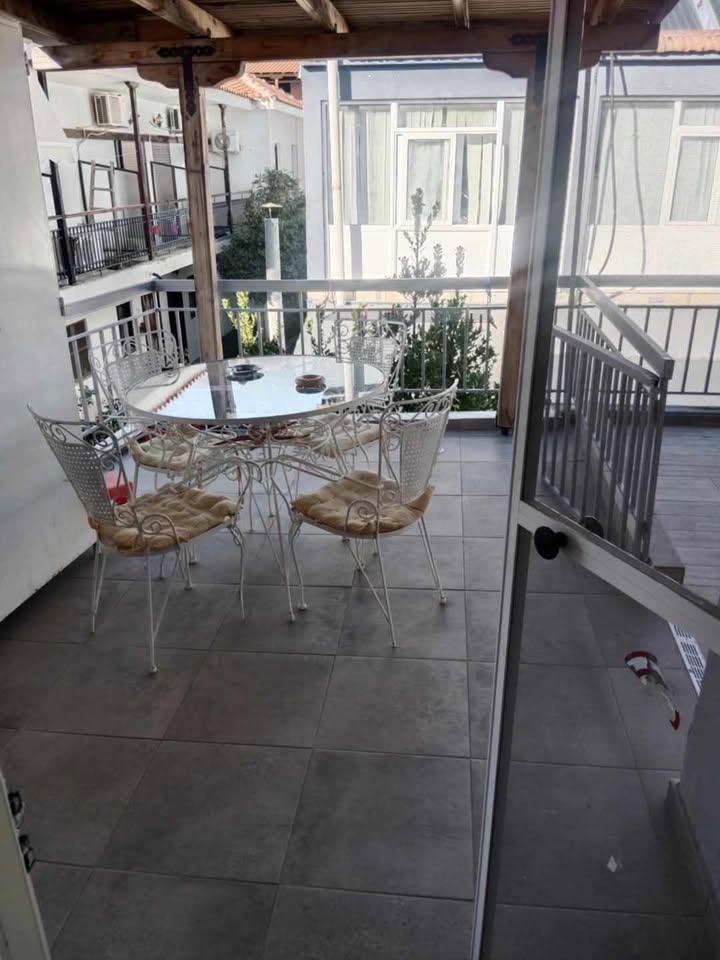 Апартман бр.1 во Неа Плагија. За 4 лица. 80 метри од плажата. Имате еден брачен кревет во едната соба, плус 2 единечни кревети во другата соба. Кујна опремена за подготовка и сервирање храна и пијалоци. Клима уредот и Wifi се вклучени во цената. Апартманот се наоѓа на првиот кат и има 2 тераси. Една напред и една позади.Апартман бр.2 е наменет за 4-5 лица на 80 метри од плажа. Има еден брачен кревет во едната соба, плус една софа кревет во другата соба. Можност за еден дополнителен кревет. Опремена кујна за приготвување и послужување храна и пица. Клима и Wi-Fi се вклучени во цената. Станот се наоѓа на прв кат и има голема тераса напред и мала тераса назад.